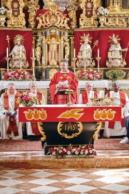52 Jugendliche aus Baumkirchen, Gnadenwald und Mils, also unserem Seelsorgeraum, wurden am Pfingstsamstag von Generalvikar Mag. Roland Buemberger unter Mitwirkung von Pfr. MMag. Lic. Norbert Zur, P. Hermann Gutwenger und Mag. Martin Ferner gefirmt. Von Pastoralassistenten Richard Gassler bestens vorbereitet zogen sie begleitet von der Musikkapelle Mils und den Paten und Patinnen in die Milser Pfarrkirche ein. Im Presbyterium wurden extra Bänke für die vielen Firmlinge aufgestellt, damit möglichst viele Verwandte und Freunde sitzend der Firmung beiwohnen konnten. Die "Musis" umrahmten den Gottesdienst musikalisch in sehr stimmiger Weise. Bürgermeisterin Mag. (FH) Daniela Kampfl wandte sich mit der Bitte an die Firmlinge, sich entsprechend ihren Fähigkeiten und Interessen einzubringen und Verantwortung für die Gemeinschaft und die Zukunft zu übernehmen.